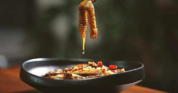 将小葱、大蒜、小米切碎,热油炸熟,加入香料调成酱汁。
