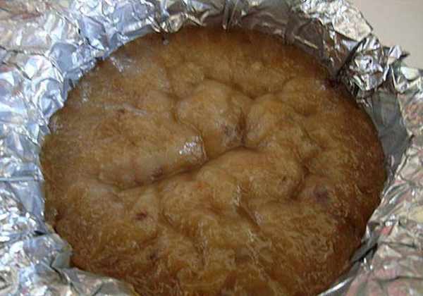 做法~先把年糕的模型用铝箔纸垫好~要抹一层油比较好脱模!