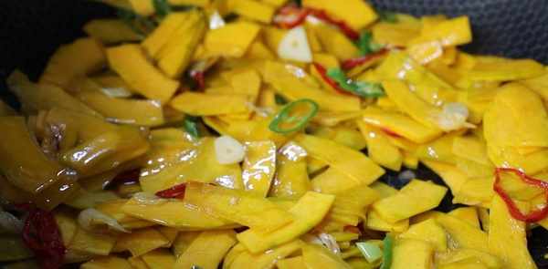 因为南瓜中含有糖分,所以这样炒出来的酸辣口感略带甜味。真的比炸薯条好吃,而且南瓜更有营养。喜欢的朋友可以在家试试。