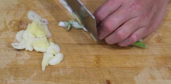 准备蒜片和姜片。大葱切成葱花,蒜末、姜末、蒜末混合。