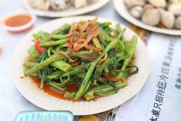 这个名字非常奇怪,因为就是蒜蓉炒通心菜,吃了导游,说是因为早期能吃上通心菜的华人,是属于收入很高的人群,用餐是时,如果点上这菜,就会很有面子,很风光,因此别称“马来风光”。