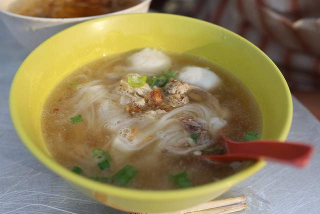 除了炒粿条,还有爆粿条汤,里面有鱼丸,猪肉碎等,汤头很好饮。