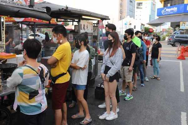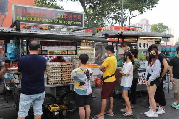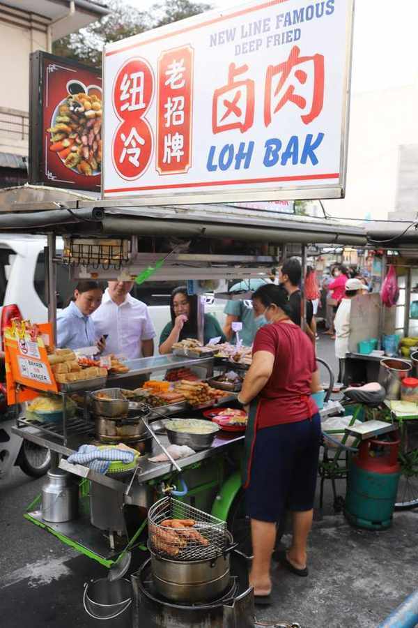 在纽冷街,可以品尝到各种当地的特色小吃,我们下午五点半到达,看到街口的小贩档前,已经有食客在排队了。
