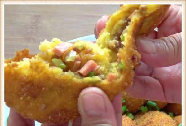 放在鸡蛋液里面裹上一层鸡蛋液,再裹上一层面包糠,用手压成小饼状,锅里倒油油温六成热的时候把南瓜饼放进去开始炸,期间用筷子搅拌翻动,用小火慢慢炸。一直炸到两面金黄就可以出锅了。一盘南瓜肉末饼就做好了,南瓜这样做特别好吃,一次吃五六个吃不够,老人孩子也特别喜欢。