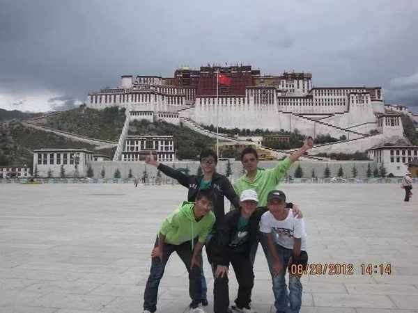 1、陈大川(后排左)自行车骑行川藏线后抵达拉萨