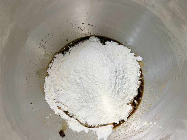 1,将所有食材混合均匀,可以先放红糖,清水,待红糖稍微融化后加入酵母粉和面粉,因为红糖的用量比较大,所以酵母一定要选择耐高糖酵母,普通酵母发不起来。