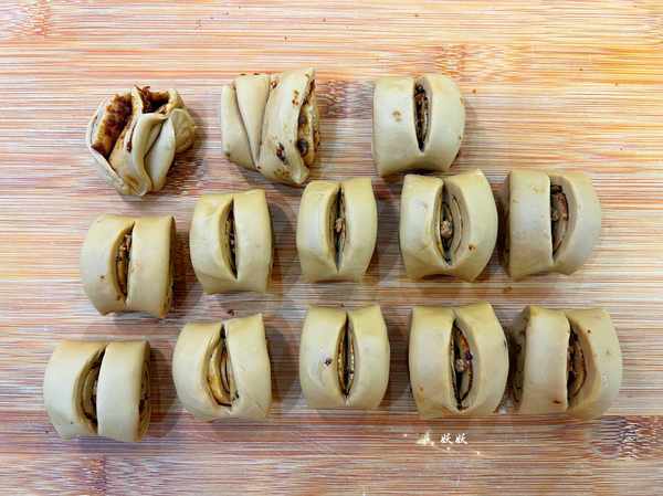 6,两端的面团可以折叠成花卷,馒头表面划上一深刀,这样蒸好就会成裂开的形状。