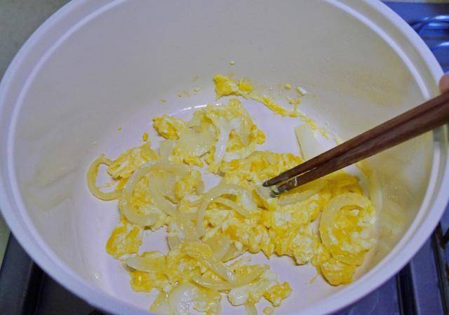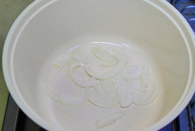 倒入洋葱丝用中小火炒至熟软,