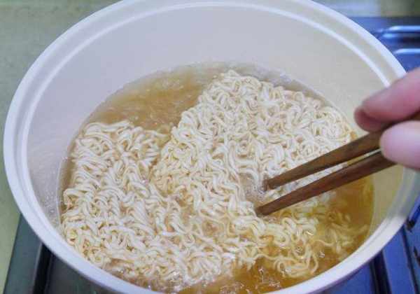 水滚后将泡面下锅,