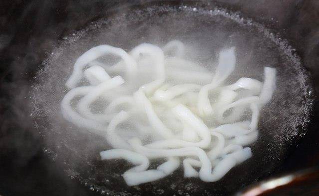 鸡胸肉放入滚水中,转小火焖煮约10分钟,取出沥干、放凉。将鸡胸肉剥丝,小黄瓜切丝、粄条切粗条备用。