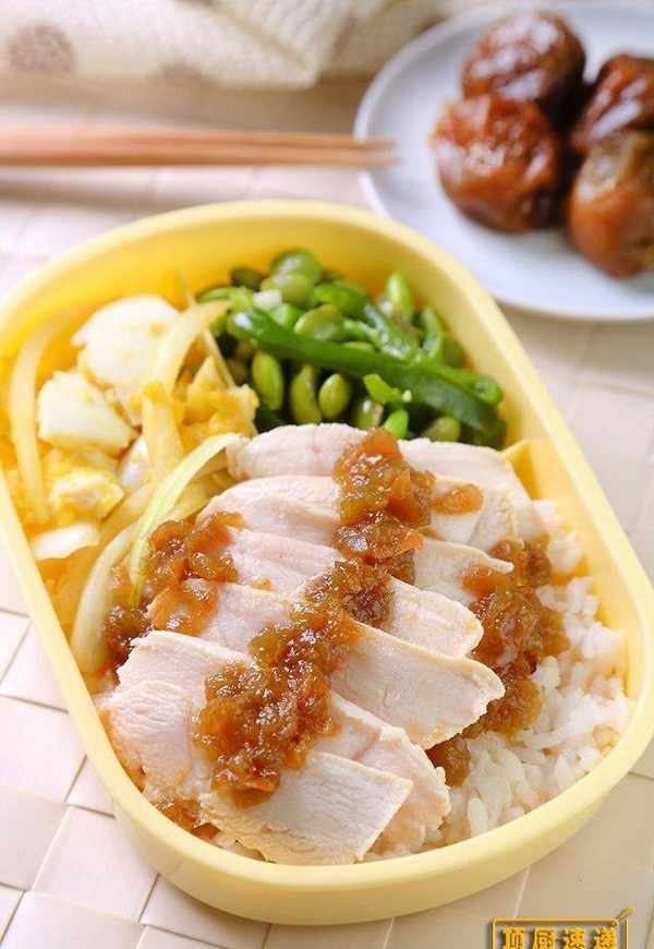 粄条放入滚水烫10秒至软,起锅后放入冰块水中泡约1分钟,捞起沥干备用。将粄条铺底,放上鸡丝及小黄瓜丝,摆入餐盒即可。