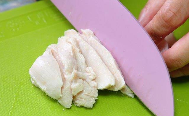 Tips:鸡胸肉若超过4公分厚度,建议对切成薄状,厚度2公分左右入口刚好。