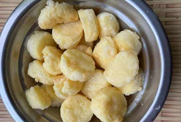 2.煎煮的时候,裹上一层淀粉,煎出来表皮酥脆好吃。