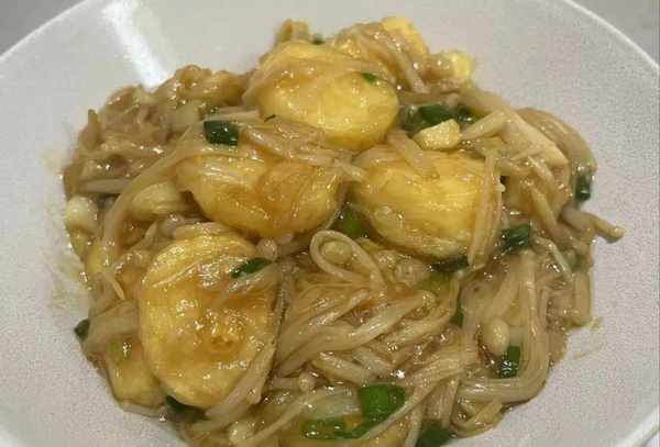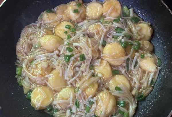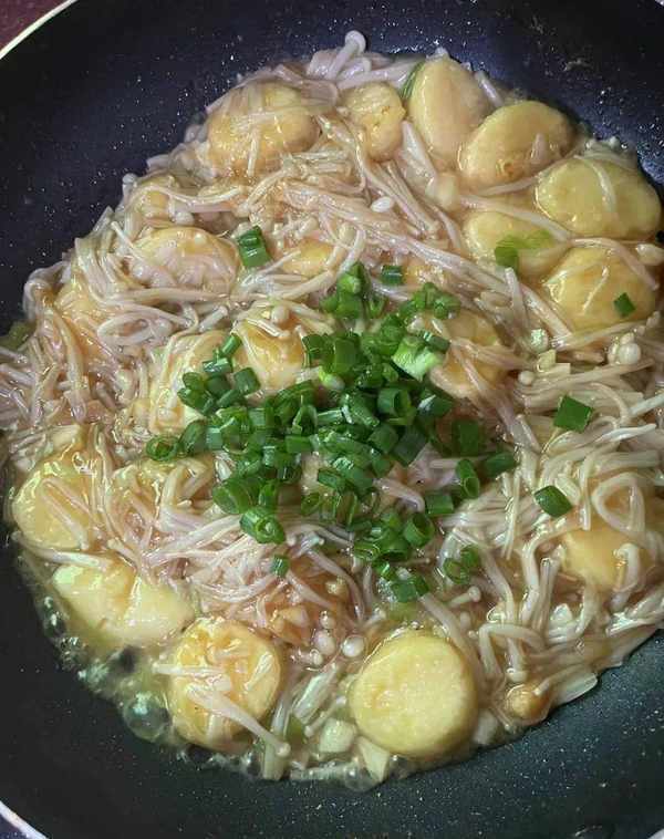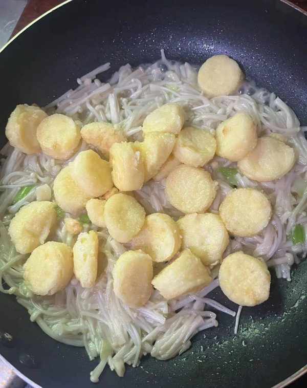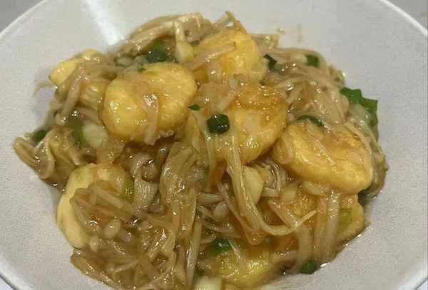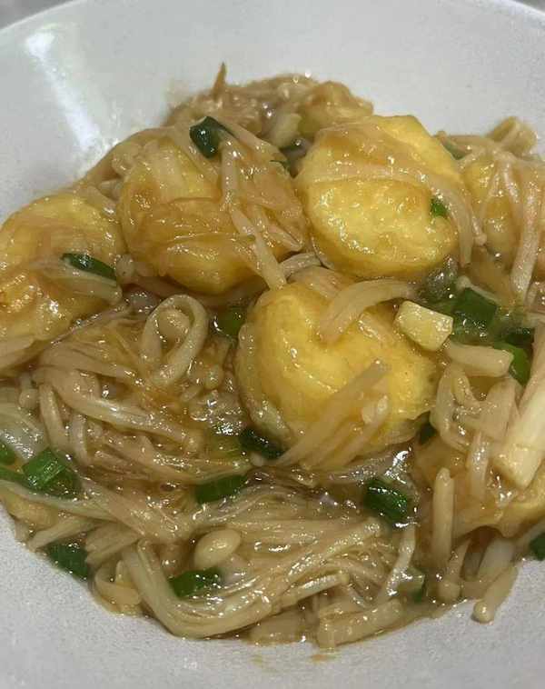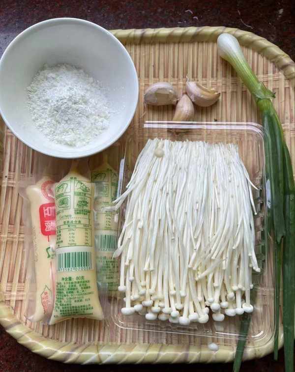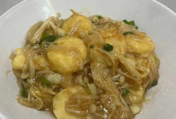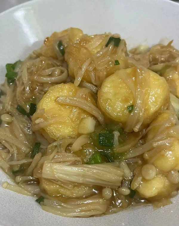日本豆腐,金针菇,淀粉,蒜瓣,小葱,食盐,蚝油,食用油