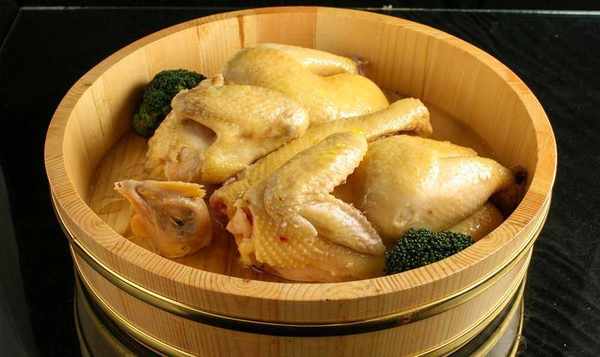 1.将鸡放入滚水(加有姜葱煲成的沸水),慢火煮15分钟(时间不能太久,免得鸡煮老了);