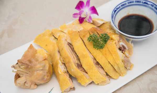 4.捞起鸡只,斩件上碟,淋上B调味料。