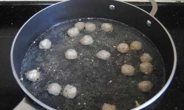 4,锅内倒入半锅清水,加入姜粉(姜片),胡椒粉和猪肉丸子煮沸
