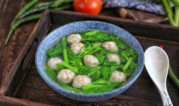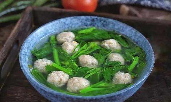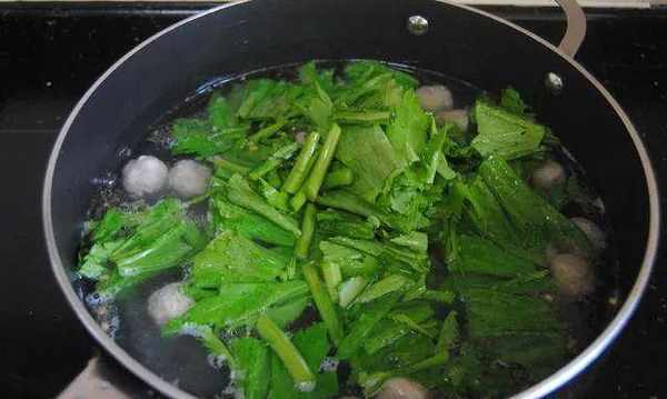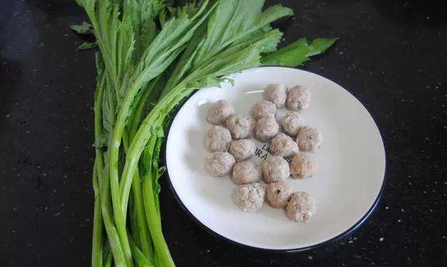 【芥菜肉丸汤】芥菜1把,猪肉丸子半斤,胡椒粉1克,姜粉或姜片适量,盐2克,猪油2勺