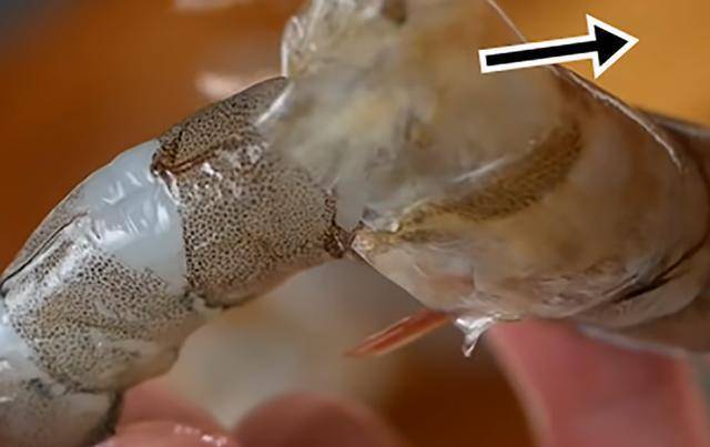 3、用手抓住虾子尾鳍,拉开另一瓣尾巴尖刺。