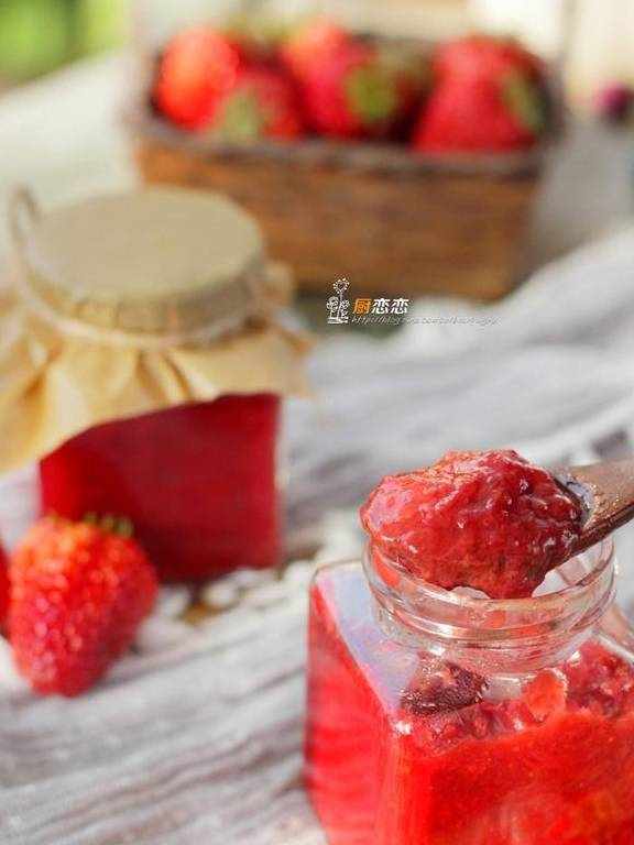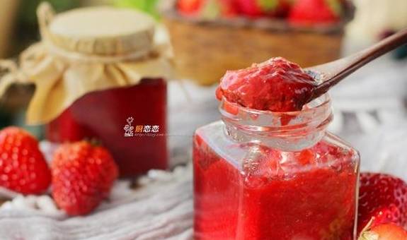 6、自己做的草莓酱因为没有添加不宜久存,短时间储存需要把玻璃瓶开水锅中蒸或煮15分钟彻底消毒,然后将果酱趁热放入封口,凉后入冰箱储存。这样可以放一个月左右,一旦打开就需要在短时间内吃完。