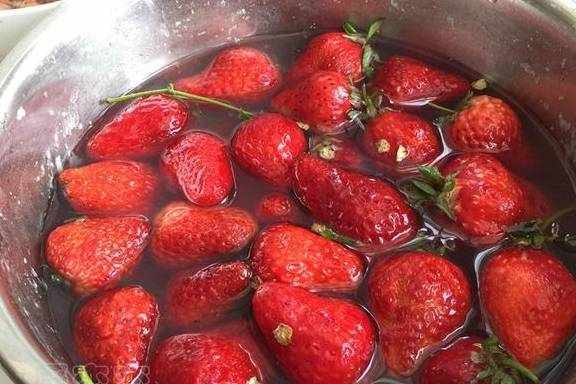 3、熬草莓酱的时候不用再加水,草莓本身含水量就很丰富的,洗好的草莓直接放锅里煮就可以的。
