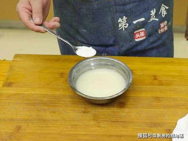 一勺面加少许淀粉用半碗水化开调成有点透亮的稀糊备用。