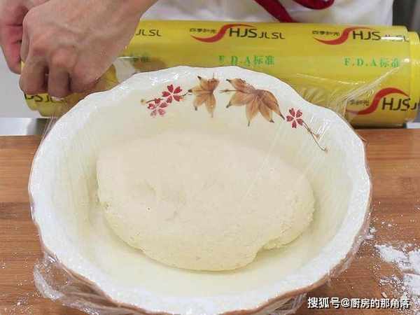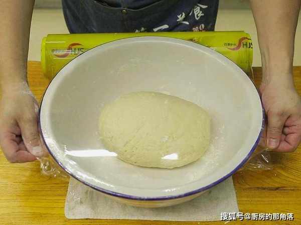往盆里加入适量的面粉、3克酵母用30-40度的温水化开倒入面粉中,合成软硬适中的面团,用保鲜膜封上发酵至原来的两倍大。