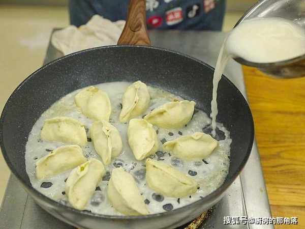 起锅烧油,把煎包一个一个放进去,相互留有间隔,把刚刚调好的面水搅匀倒进去,面水没过煎包底就可以盖上盖子了,等到面水收干以后沿锅边淋上油再煎一会儿即可出锅。