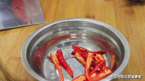 抓入一把干辣椒,倒入小米椒 ,倒入