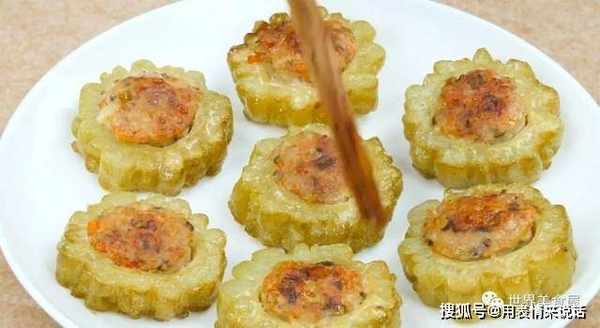 5、这道苦瓜酿肉香咸入味,好吃解腻,可以促进食欲,一盆都不够吃。