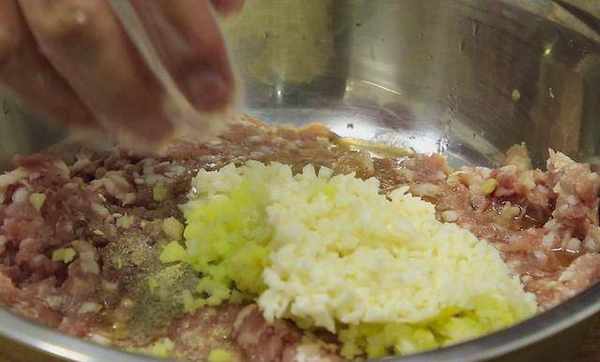 1.大葱白破开以后切成葱花,生姜一块和葱花一起剁碎,剁的越碎越好,山药削去外皮先切成片,再切成碎粒,肉末放在盆中,加入食盐2克、鸡粉2克、胡椒1克、蚝油3克、料酒5克,放入葱姜末和山药末,用手摔打搅拌给肉馅上劲入味。