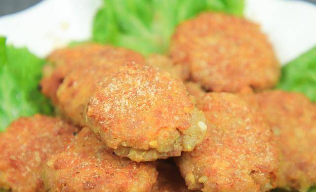 5、丸子熟了以后,在盘中放上生菜叶,然后把小丸子放在盘中,撒上椒盐粉就可以食用了。