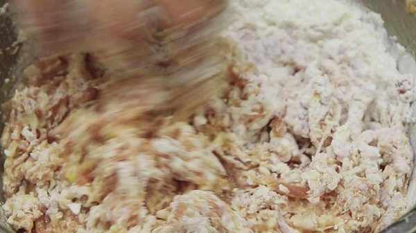 2、肉馅中加入一点清水继续搅拌,让肉馅充分吸收水分,吸足水分的肉泥口感才会更加滑嫩。然后打入一个鸡蛋,再次搅拌上劲抓匀,这个过程持续三到五分钟,加入淀粉8克,用淀粉锁住肉馅内的水分,再次搅拌放置10分钟左右入味。