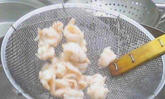 4、丸子定型以后,有粘连的用勺子轻轻打散。下丸子的时候,一定要开小火,或者起锅,油温不要太高,这样才能保证前期下入的丸子和后期的丸子色泽一致,生熟一致。
