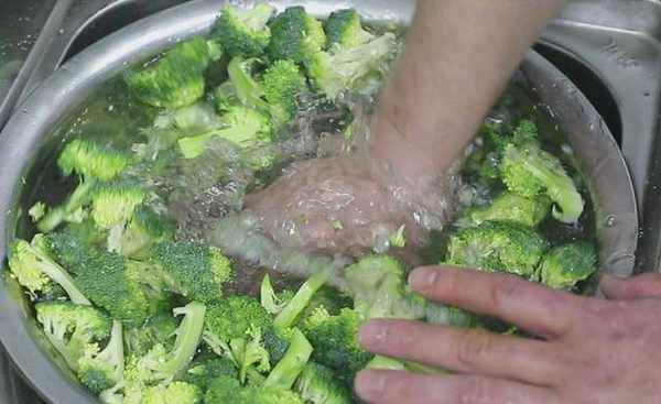 1、把西兰花沿着根茎拆成小朵,然后把比较大的切开,方便炒熟和入味。切好的西兰花放入清水中,撒入一小撮食盐淘洗干净,再浸泡5分钟,充分去除杂质和灰尘,西兰花洗干净以后捞出来备用。