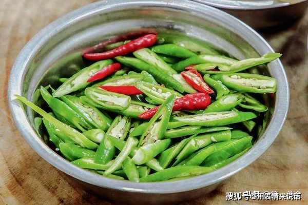 4.然后,我们准备辅料,洗净的线椒一把,去蒂后斜刀切成片,小米椒几个从中间切开和线椒放在一起,用来配色。