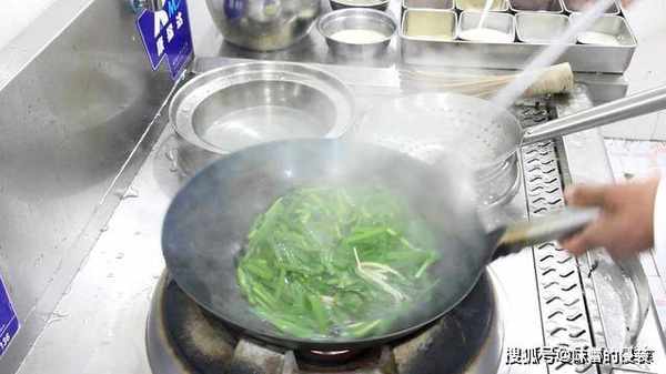 2.锅里加水,我们先把豆腐皮焯一下水,水开后,倒入千张,焯水30秒后倒入韭菜,翻几下就可以出锅控水。