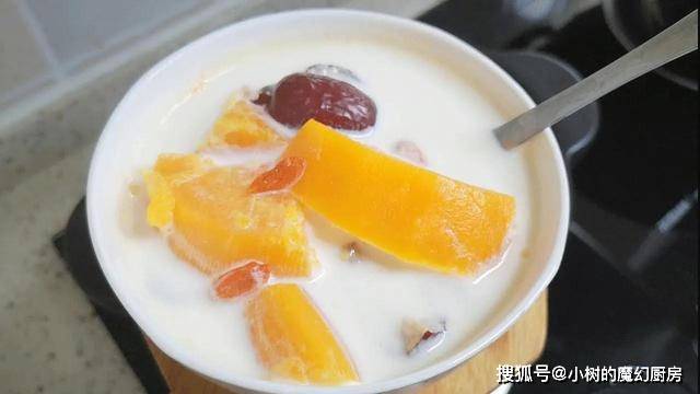 木瓜是可以健脾消食的,还富含维生素C,大家多吃这道木瓜炖牛奶,可以美容美白。