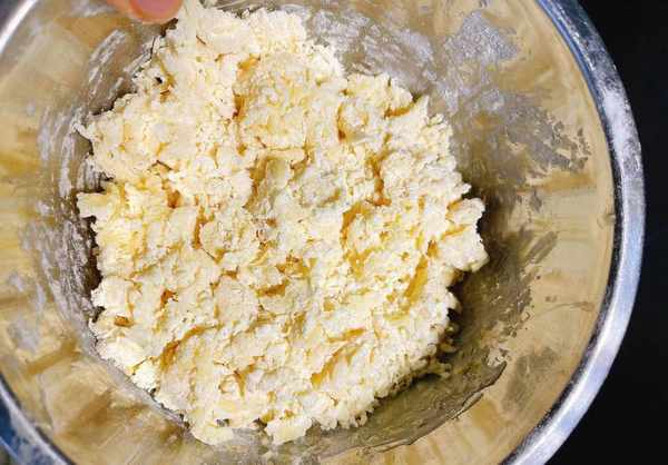 1、先在碗里打入一个鸡蛋,将蛋液搅散,接着在盆中加入适量的白面,也可以掺入一些玉米面混合匀,接着将蛋液分多次加入面粉中,多搅拌,形成小疙瘩。