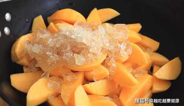 5、这道黄桃冰糖水,润喉止咳,吃起来清甜香软。