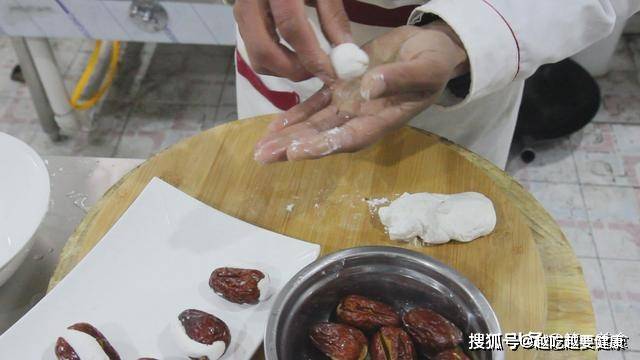 取适量的糯米粉,加入清水,搅拌成面团。再团成若干个小团,作为红枣的夹心。