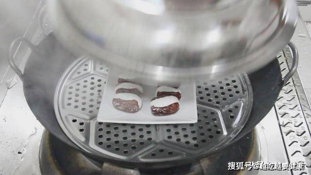 烧热水,水开后架上箅子,把红枣放进去。盖上盖子,小火蒸8分钟。