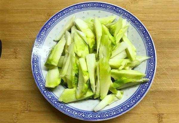 1.首先准备新鲜的儿菜500克,然后给它切成厚的薄片。放在清水中给它冲洗干净。而菜大家一定要挑选最鲜嫩的。老的儿菜一定要去掉。否则口感不好。