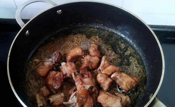 糖色炒好之后,一定要准备50度左右的温水倒在锅中。如果是凉水,糖浆太容易溅到咱们身上烫到咱们。再一个,如果凉水突然把糖色的温度给降下来,糖色就容易发苦,色泽也不好看,这一点也要记好。