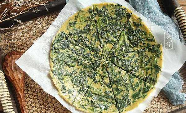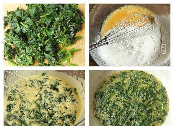 【食材】:面粉适量、红薯叶适量、食盐1小勺、五香粉1小勺、鸡蛋3个、