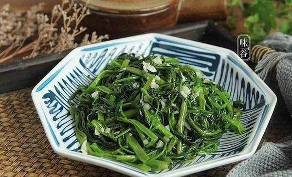 【食材】:空心菜适量、蒜末适量、食盐少许、白糖1小勺、腐乳1~2块、