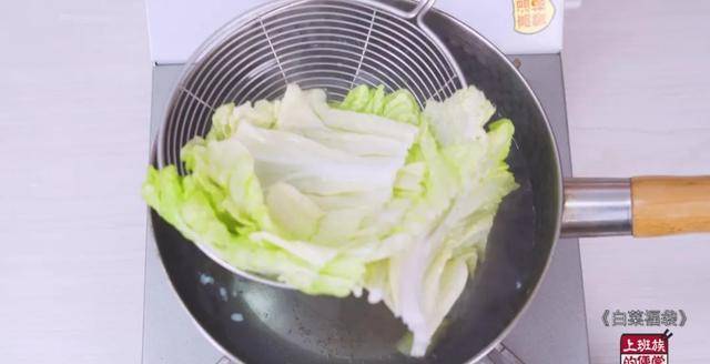 白菜叶放水里烫10秒左右捞出,香菜梗烫软捞出。