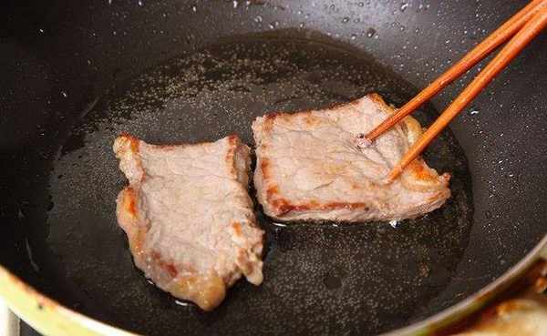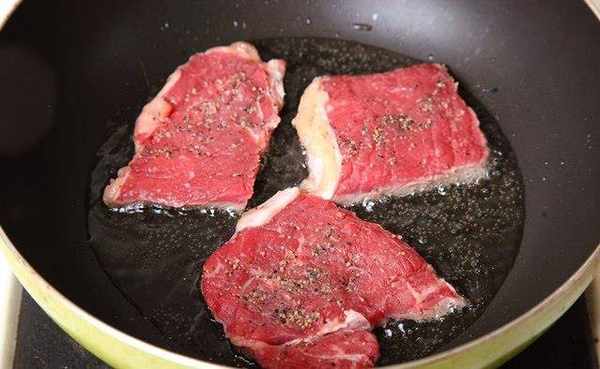 小火热油锅,放入植物性奶油1汤匙,再放入牛肉。