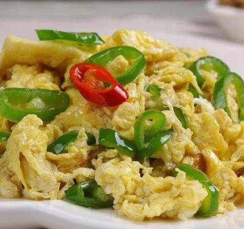 4,把鹅蛋煎好后,盛出备用。接着锅内再次倒油,放入青红辣椒,激发出香味后,再次放入鹅蛋,和辣椒圈一起翻炒片刻,即可大功告成。