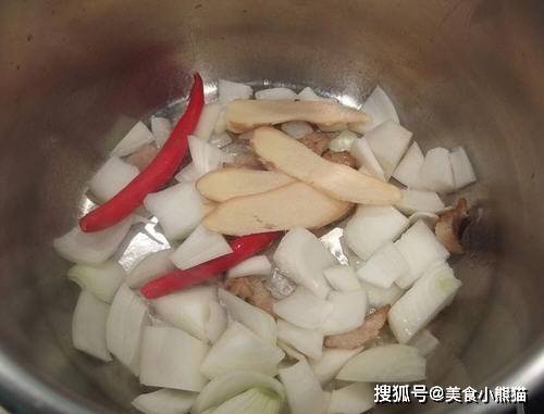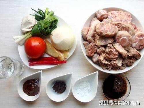 主料:牛腩500g、牛尾600g、洋葱1颗、辣椒2根、姜片3-4片、青葱3根、番茄1颗、高汤或水适量